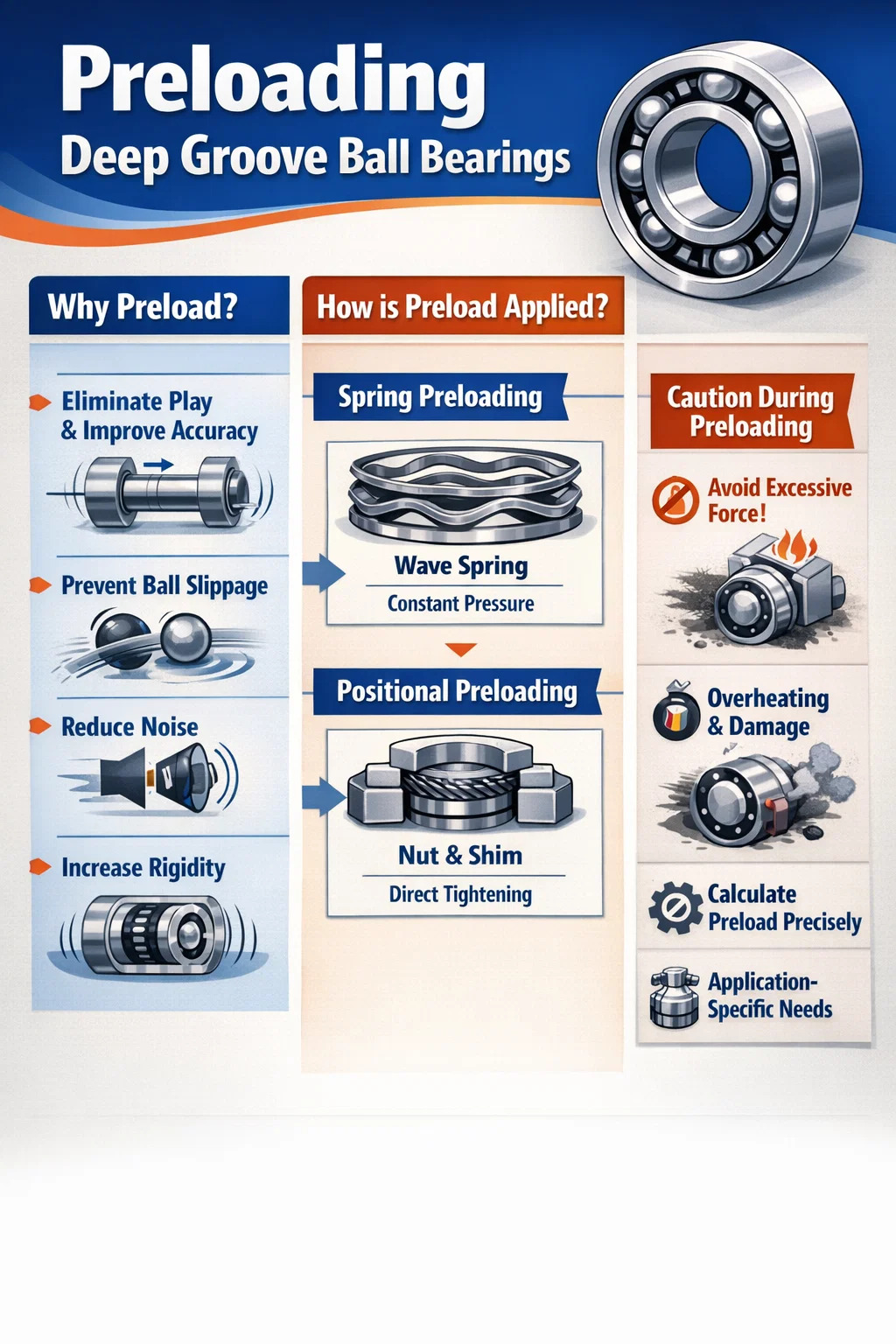 คำตอบคือใช่: ตลับลูกปืนเม็ดกลมร่องลึก สามารถโหลดล่วงหน้าได้ และในการใช้งานที่มีความแม่นยำหรือความเร็วสูงหลายประเภท การโหลดล่วงหน้าถือเป็นสิ่งสำคัญเพื่อให้มั่นใจว่าฟังก์ชันการทำงานที่เหมาะสม