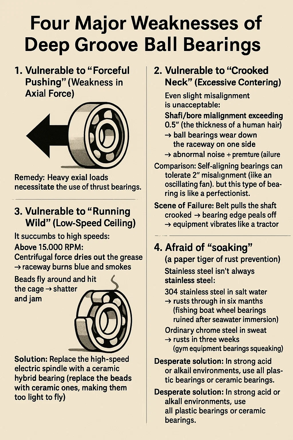 จุดอ่อนที่สำคัญสี่ประการของ ตลับลูกปืนเม็ดกลมร่องลึก